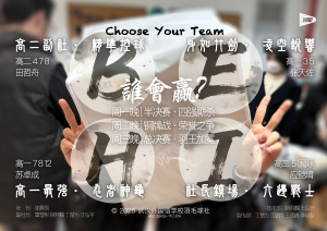 初版小组赛海报,姚羿麟制图,原先计划为每个班级制作包含该班赛程的海报,后因为姚羿麟没有时间完成其他队伍海报而废弃